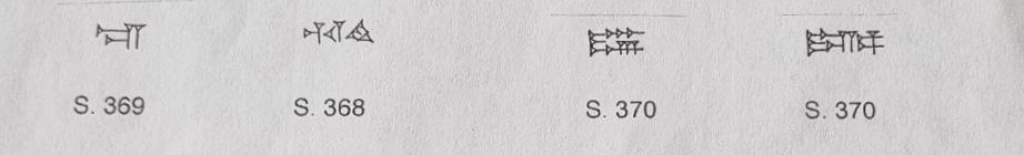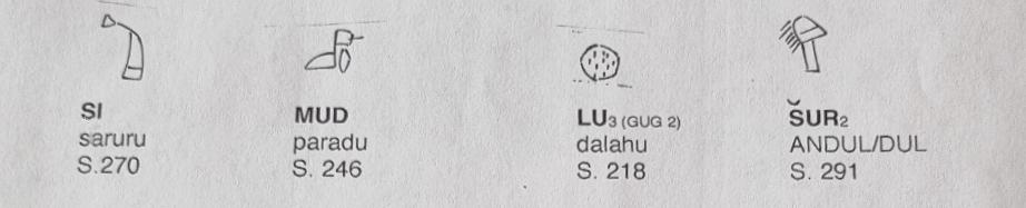Zu diesen Bildzeichen geben Green/Nissen folgende Keilschriftzeichen: