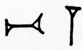 Die Tabelle enthält in der ersten Kolonne die Zeichen, wie sie im archaischen Hellas, vor allem auf Kreta, ans Licht gekommen sind, und wie sie Louis Godart und Jean-Pierre Olivier zusammengestellt haben Anm. 1. Die zweite Kolonne enthält die entsprechenden Urbilder aus Uruk nach der Darstellung von Margret W. Green Anm. 2. In der dritten Kolonne sind die Namen der Zeichen nach Green aufgeführt. Und in der vierten Kolonne sind die aus den mesopotamischen Urbildern hervorgegangenen neuassyrischen Keilschriftzeichen zu sehen.